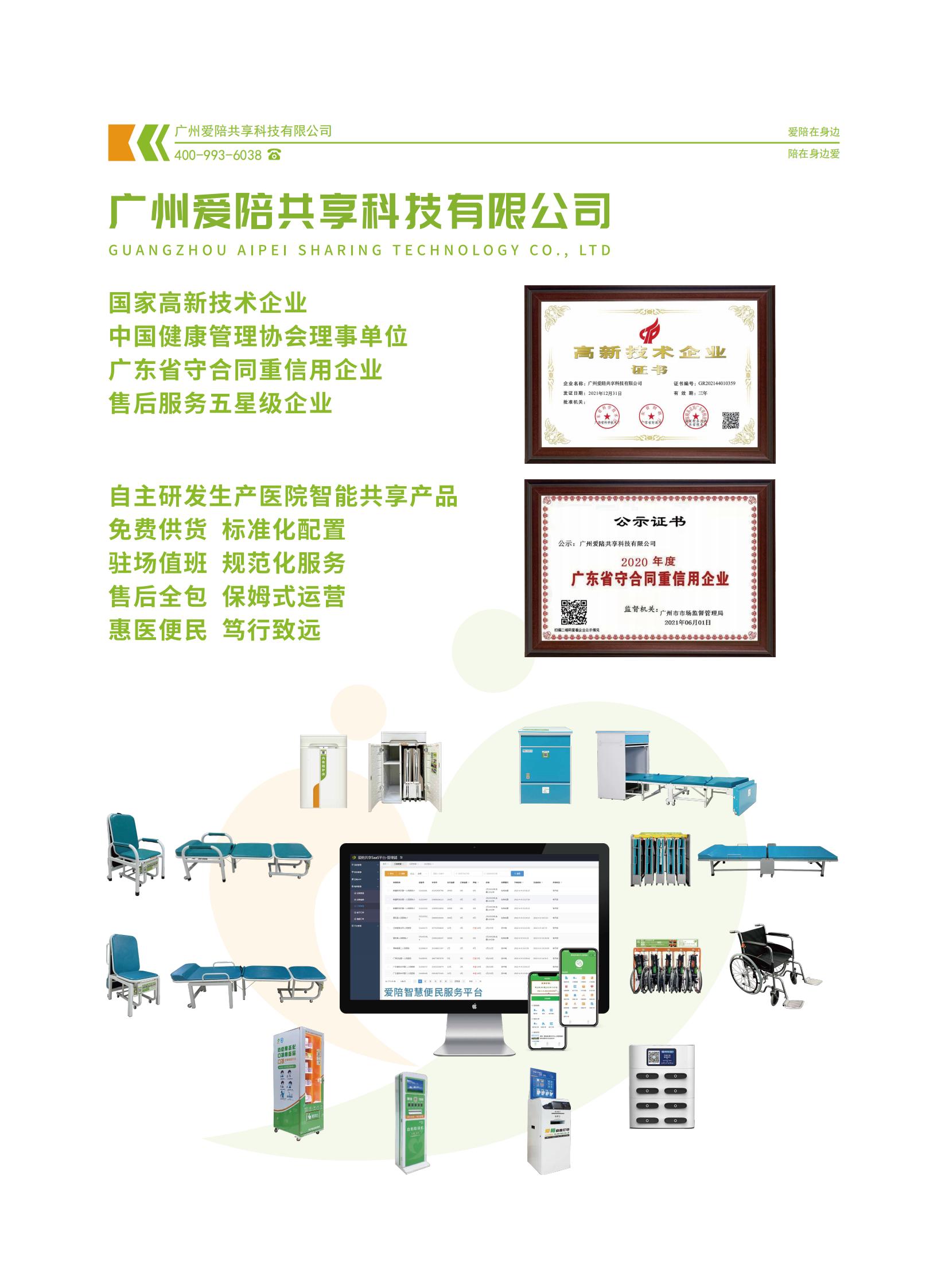 廣州愛(ài)陪共享科技有限公司專注于醫(yī)院智能共享產(chǎn)品與服務(wù),技術(shù)創(chuàng)新、研產(chǎn)一體,模式創(chuàng)新、智慧服務(wù),是國(guó)家高新技術(shù)企業(yè)、廣東省守合同重信譽(yù)企業(yè)、中國(guó)健康管理協(xié)會(huì)理事單位。