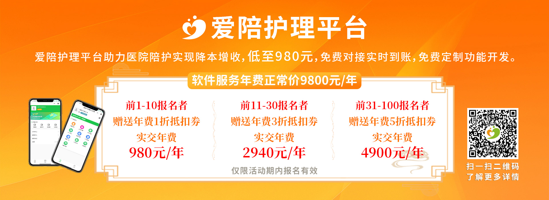 愛陪醫(yī)院護(hù)理管理平臺(tái)震撼推出年度特惠盛宴!僅需980元,全年尊享服務(wù),超值體驗(yàn),限時(shí)搶購,機(jī)會(huì)難得,不容錯(cuò)過!